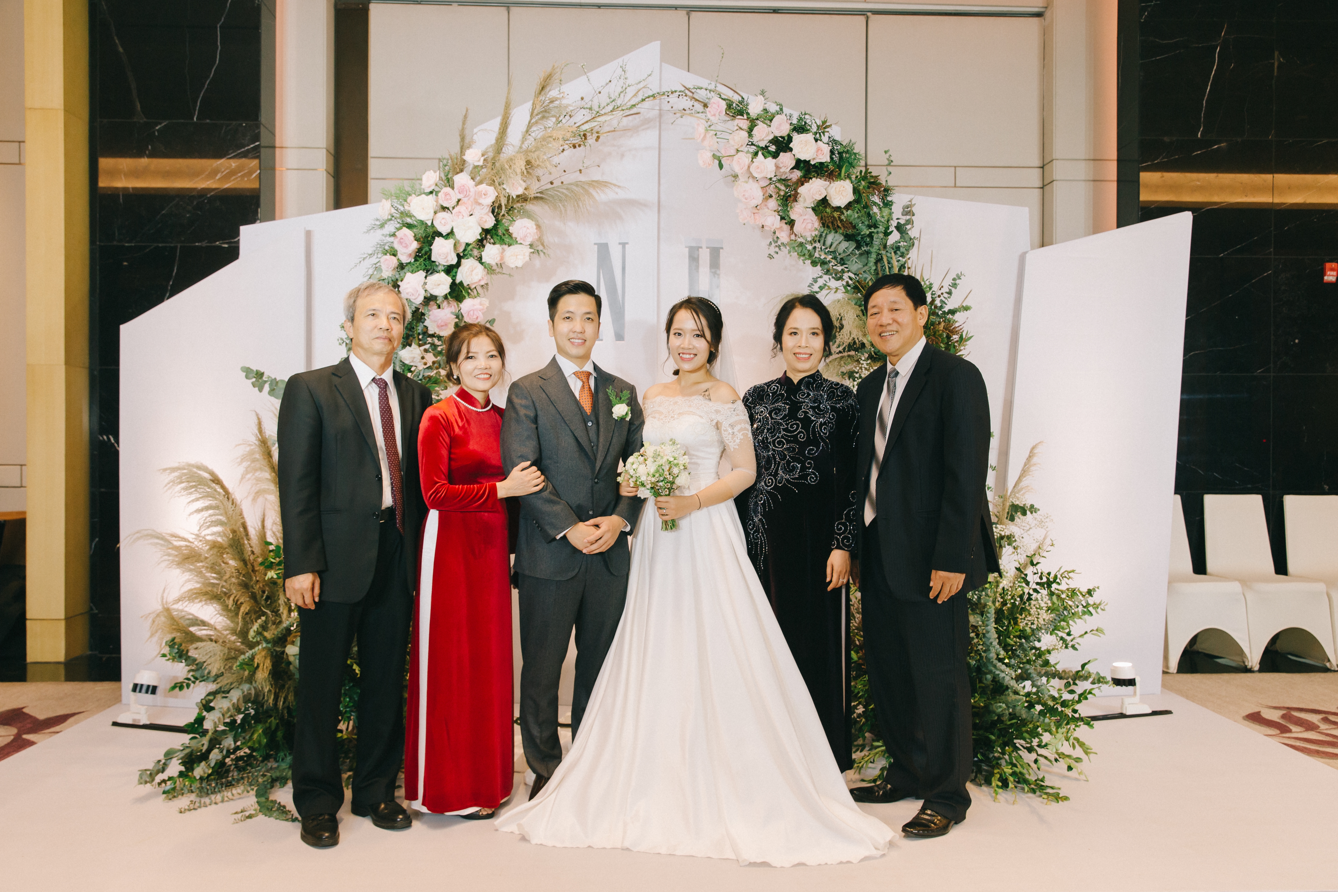 Hoa & Nguyen decided to have her wedding divided into 2 parts: ceremony & dinner in big ballroom, then the wedding after party at sky bar on Lotte Tower’s 63 floor! The wedding was so amazing with a lot of fun, memorable moments of the couple with their beloveds.